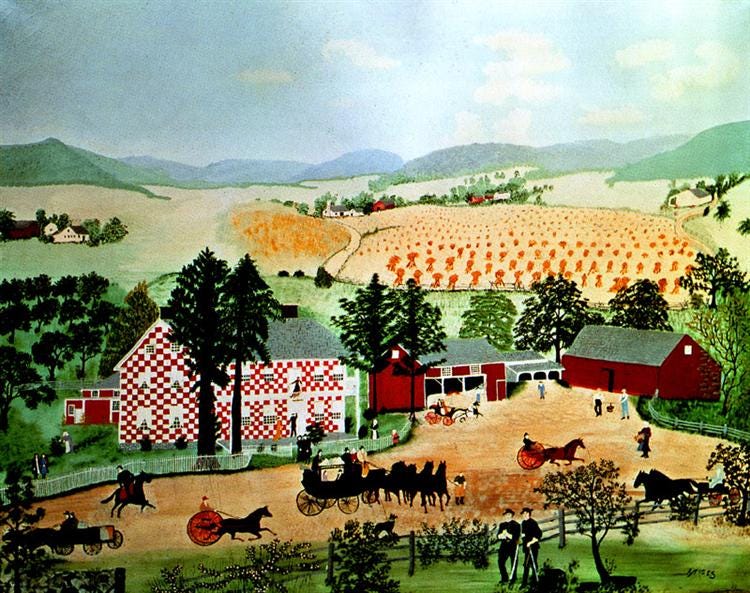 When her sister suggested she try painting, Moses resisted. But one day, she saw some leftover paint from a house repair project and decided to play with it. She realized painting was indeed fun. It was satisfying and easy on her aging hands.